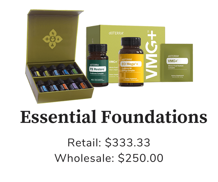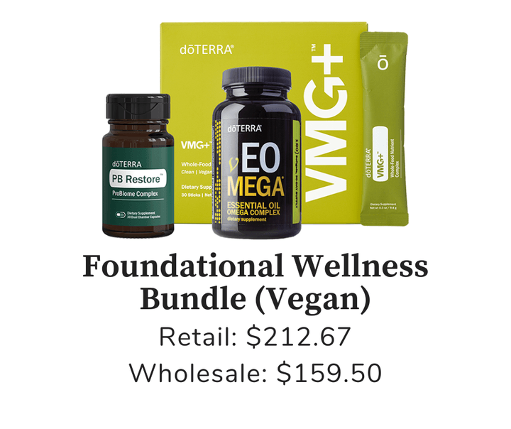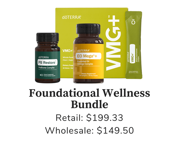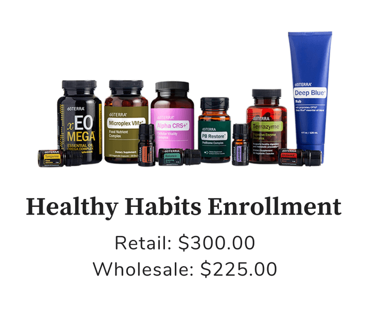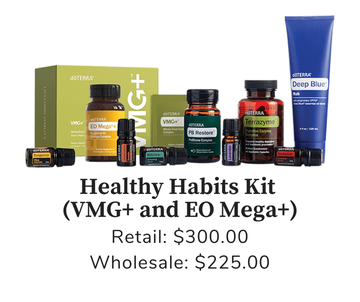 Deep Blue Rub®, doTERRA PB Restore ProBiome Complex, TerraZyme®, VMG+ Whole-Food Nutrient Complex, EO Mega+ Essential Oil Omega Complex