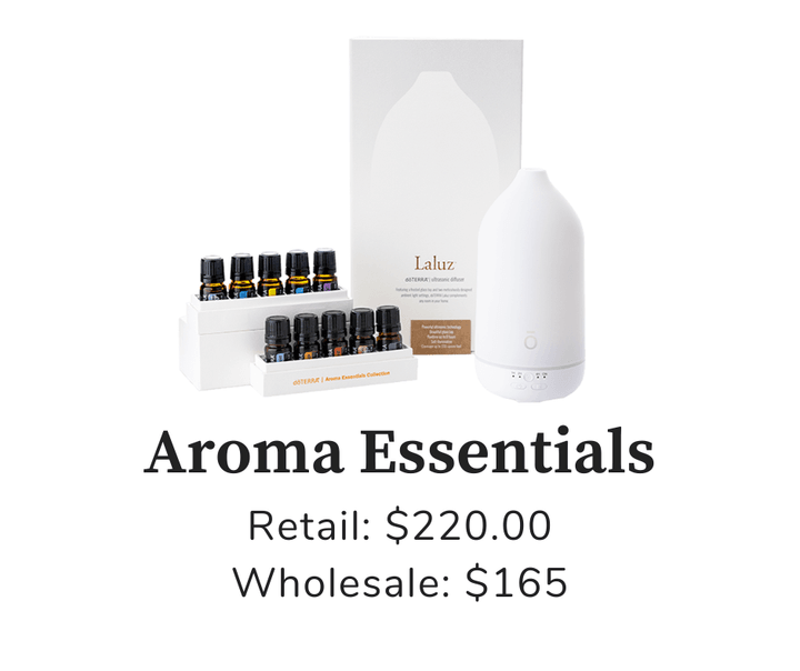 doTERRA PB Restore ProBiome Complex, VMG+ Whole-Food Nutrient Complex, EO Mega+ Essential Oil Omega Complex, Wooden Storage Box, Travel Fractionated Coconut Oil, Deep Blue® Stick, Laluz Diffuser, DigestZen TerraZyme®, doTERRA Breathe Vapor Stick, Correct-X